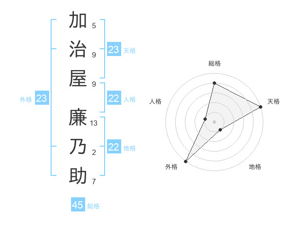 加治屋 廉乃助さんの天格は23画の5点