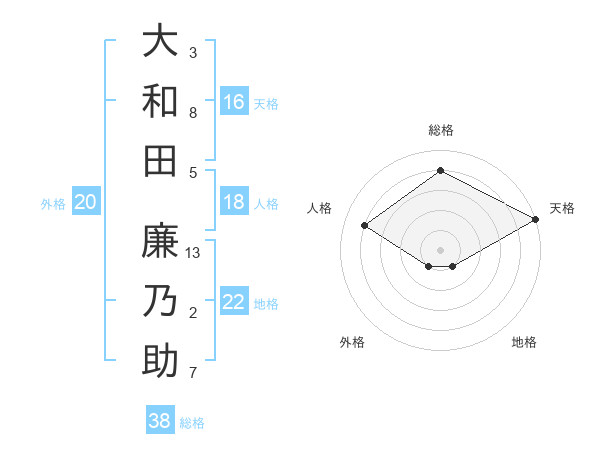 大和田 廉乃助さんを姓名の画数から五運を鑑定