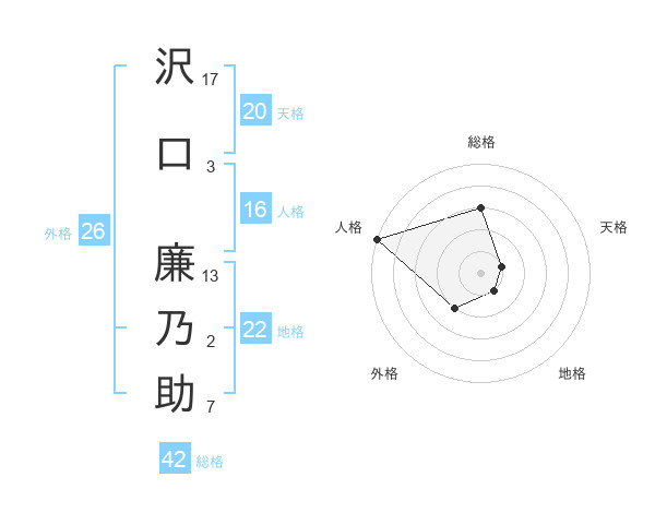 沢口 廉乃助さんを姓名の画数から五運を鑑定