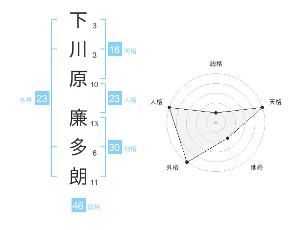下川原 廉多朗さんを姓名の画数から五運を鑑定