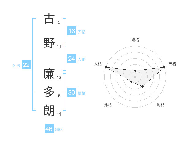古野 廉多朗さんを姓名の画数から五運を鑑定