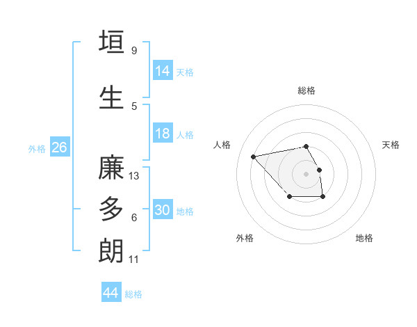 垣生 廉多朗さんを姓名の画数から五運を鑑定
