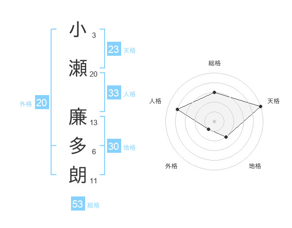 小瀬 廉多朗さんを姓名の画数から五運を鑑定