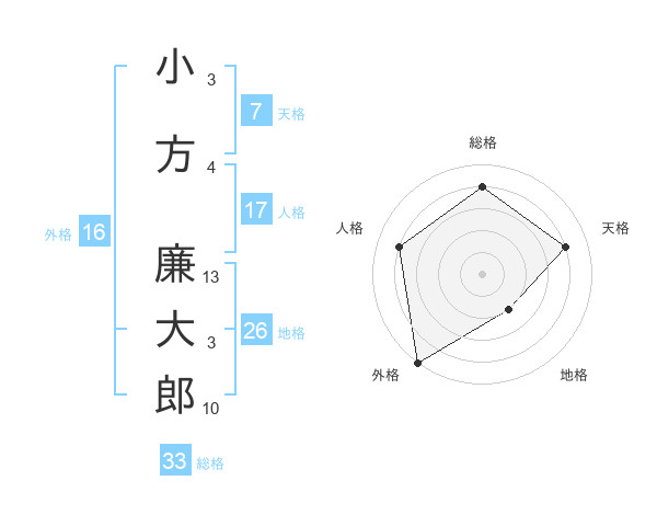 小方 廉大郎さんを姓名の画数から五運を鑑定