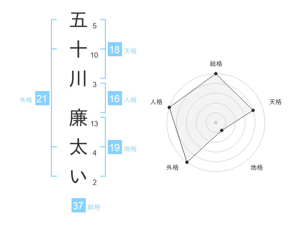 五十川 廉太いさんを姓名の画数から五運を鑑定