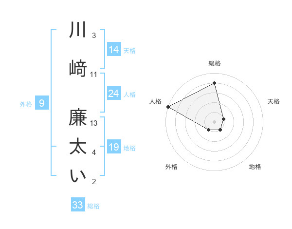 川﨑 廉太いさんの総格は33画の4点!