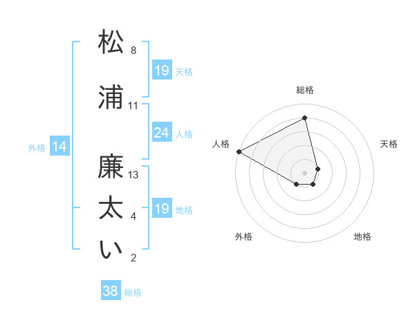 松浦 廉太いさんを姓名の画数から五運を鑑定