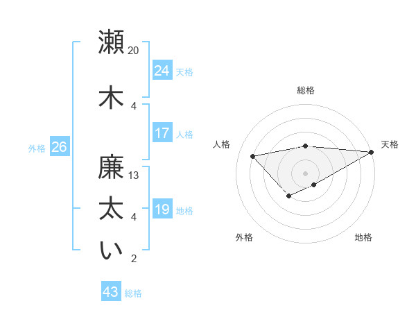 瀬木 廉太いさんを姓名の画数から五運を鑑定