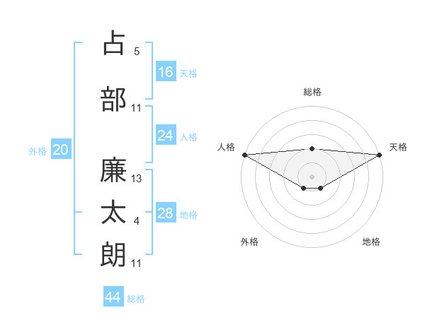 占部 廉太朗さんを姓名の画数から五運を鑑定