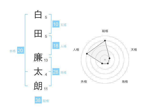 白田 廉太朗さんの総格は38画の4点!