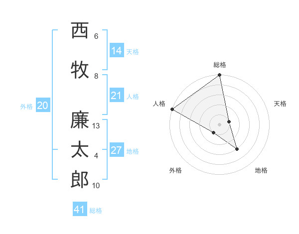 西牧 廉太郎さんを姓名の画数から五運を鑑定