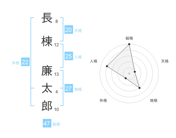 長棟 廉太郎さんの総格は47画の5点!