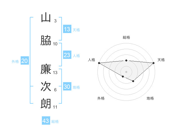 山脇 廉次朗さんの総格は43画の2点