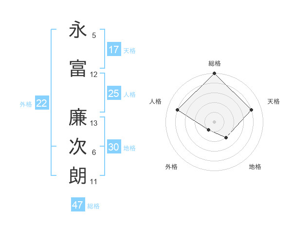 永富 廉次朗さんの総格は47画の5点!