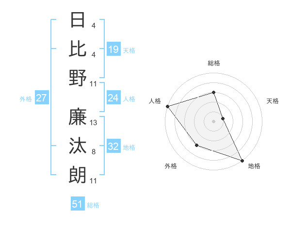 日比野 廉汰朗さんを姓名の画数から五運を鑑定