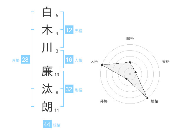 白木川 廉汰朗さんの総格は44画の2点!