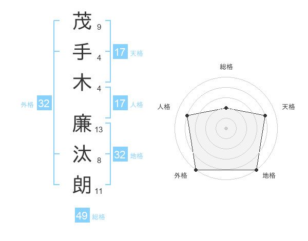 茂手木 廉汰朗さんを姓名の画数から五運を鑑定