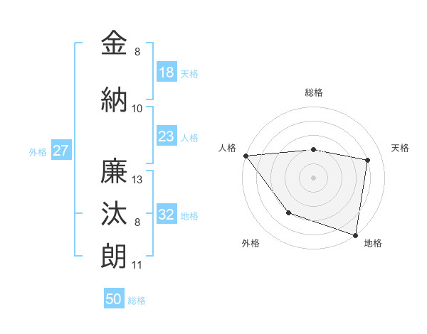 金納 廉汰朗さんの総格は50画の2点!