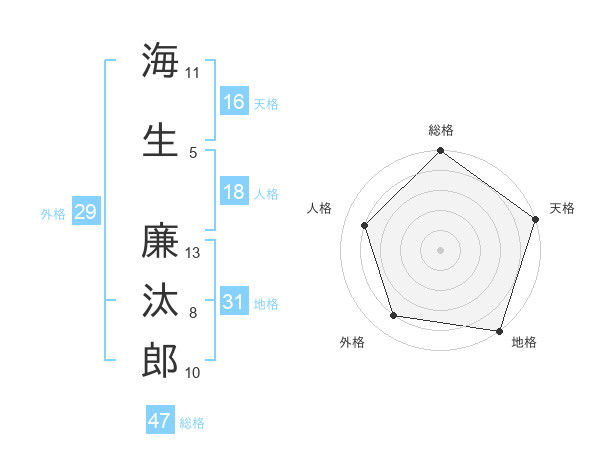 海生 廉汰郎さんの総格は47画の5点!