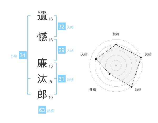遺憾 廉汰郎さんを姓名の画数から五運を鑑定