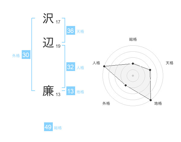 沢辺 廉さんの総格は49画の2点!