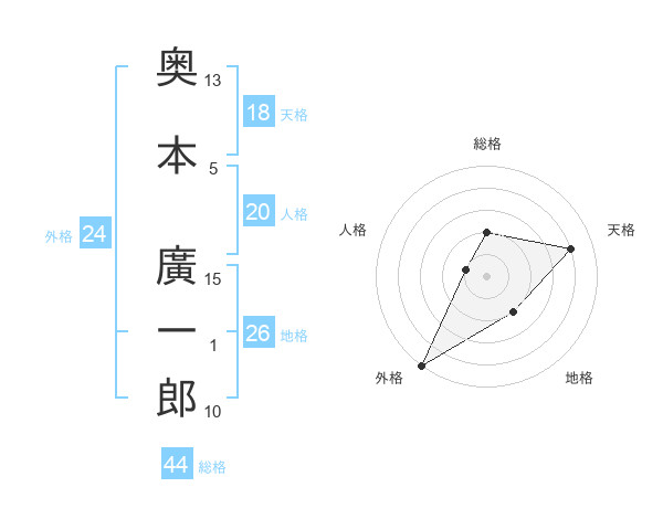 奥本 廣一郎さんの総格は44画の2点!