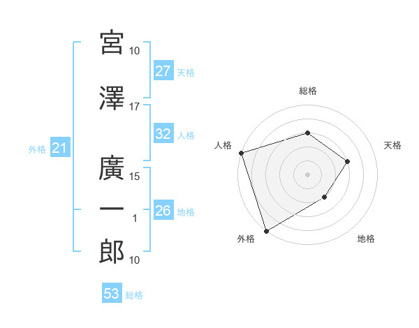 宮澤 廣一郎さんを姓名の画数から五運を鑑定