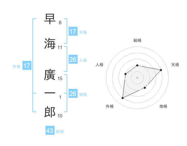 早海 廣一郎さんを姓名の画数から五運を鑑定