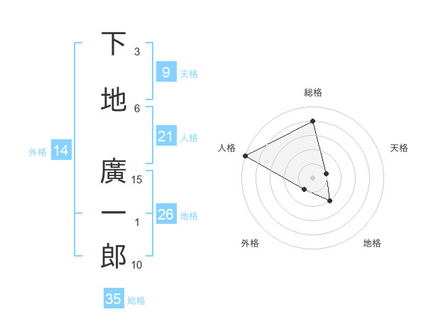 下地 廣一郎さんを姓名の画数から五運を鑑定