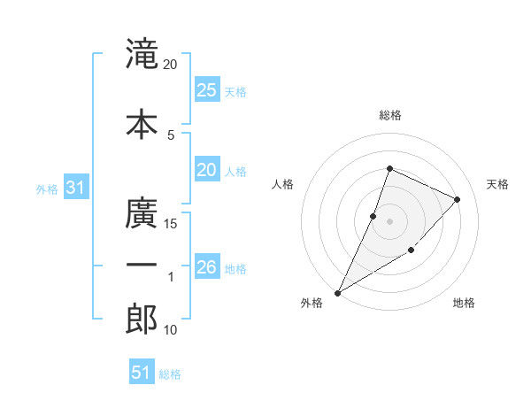 滝本 廣一郎さんを姓名の画数から五運を鑑定