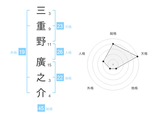 三重野 廣之介さんを姓名の画数から五運を鑑定