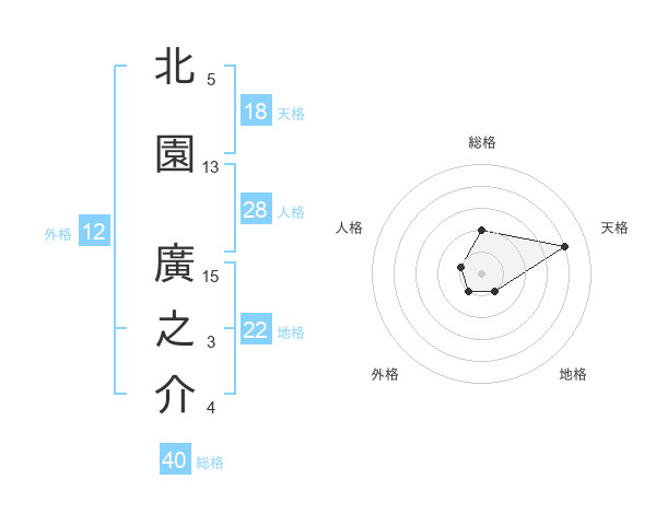 北園 廣之介さんを姓名の画数から五運を鑑定