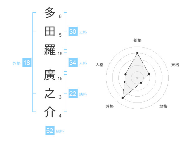多田羅 廣之介さんを姓名の画数から五運を鑑定