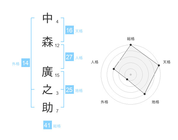 中森 廣之助さんを姓名の画数から五運を鑑定