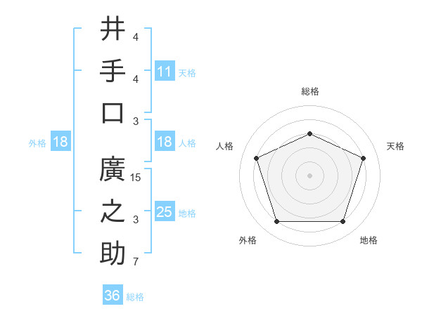 井手口 廣之助さんを姓名の画数から五運を鑑定
