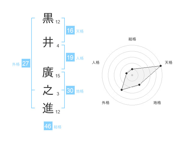 黒井 廣之進さんの天格は16画の5点!