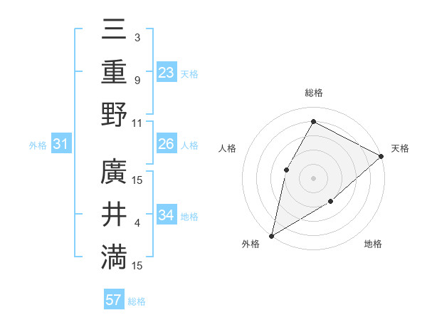 三重野 廣井満さんの総格は57画の4点!