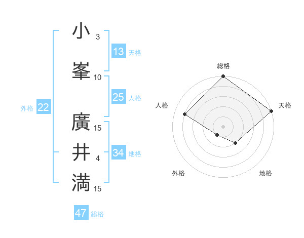 小峯 廣井満さんを姓名の画数から五運を鑑定
