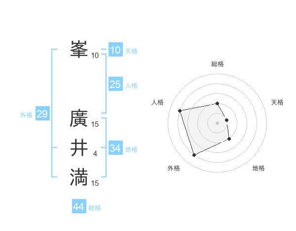 峯 廣井満さんを姓名の画数から五運を鑑定