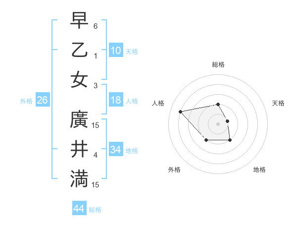 早乙女 廣井満さんの総格は44画の2点!