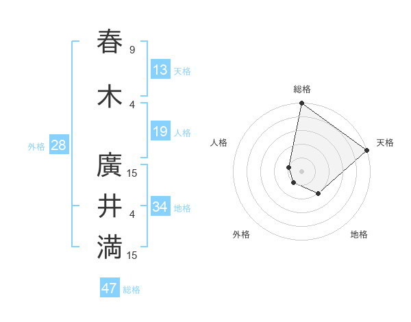 春木 廣井満さんを姓名の画数から五運を鑑定