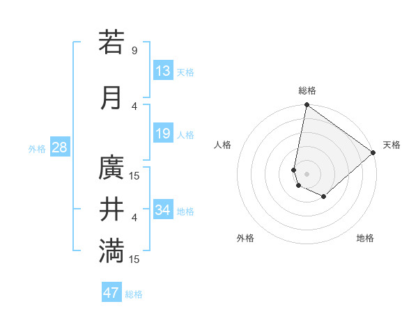 若月 廣井満さんの総格は47画の5点!