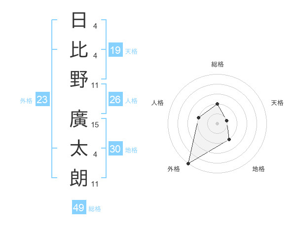 日比野 廣太朗さんの総格は49画の2点