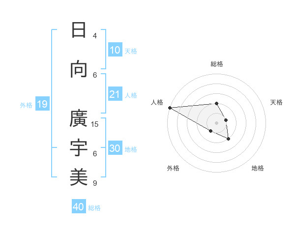日向 廣宇美さんの総格は40画の2点!