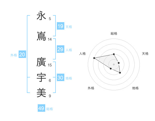 永嶌 廣宇美さんを姓名の画数から五運を鑑定