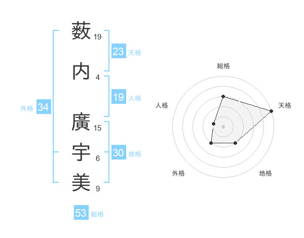 薮内 廣宇美さんを姓名の画数から五運を鑑定