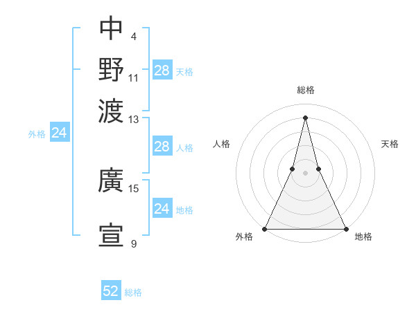 中野渡 廣宣さんを姓名の画数から五運を鑑定