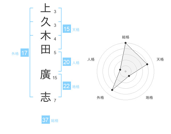 上久木田 廣志さんを姓名の画数から五運を鑑定