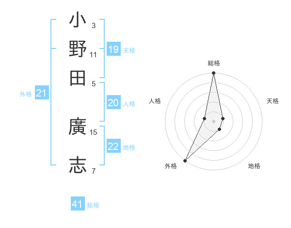 小野田 廣志さんを姓名の画数から五運を鑑定