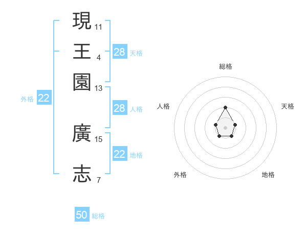 現王園 廣志さんを姓名の画数から五運を鑑定